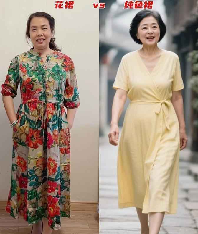 年纪大了,总爱用鲜艳大花证明自己年轻,结果常常穿得像块移动窗帘,太夸张了。