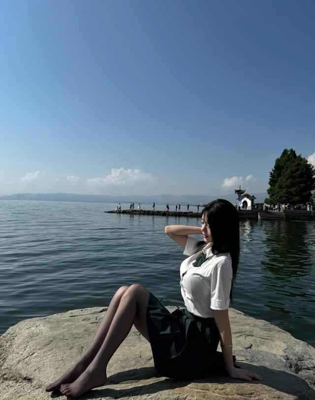 高个子女生专属:白衬衫+短裙,光脚穿搭更吸睛