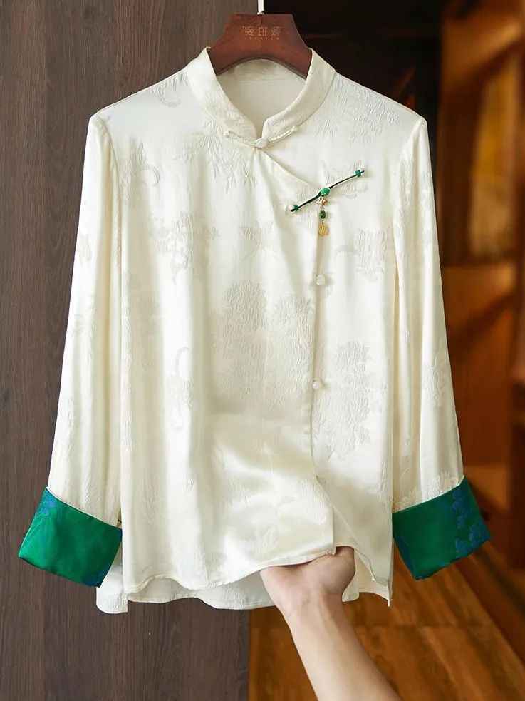 咱得打破一个刻板印象:中式白色衬衫不等于“复古演出服”。它的高级,恰恰在于那种“润物细无声”的文化浸润。想想看,当一件洁白如雪的衣服上,缀以手工盘扣、或点缀着源自宝相花、凤穿牡丹的精致刺绣时,它就不再是简单的布料,而成了一幅行走的水墨画,一件有故事的艺术品-1-7。这种美,不张扬,不喧哗,却自带静水深流的力量。在大家都追逐西式极简或街头潮流的今天,一件得体的中式衬衫,能让你瞬间从人群中脱颖而出,那份独特的东方优雅和书卷气,是任何快时尚都无法复制的。它解决的不是“有没有衣服穿”的问题,而是“如何穿出独一无二的自己”的身份认同痛点-3。