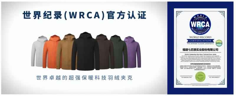 保暖实力不用多说,权威认证来说话!今年10月,七匹狼商旅多彩羽绒夹克以突破性的保暖科技,成功获得WRCA世界纪录认证,并斩获“世界卓越的超强保暖科技羽绒夹克”称号!