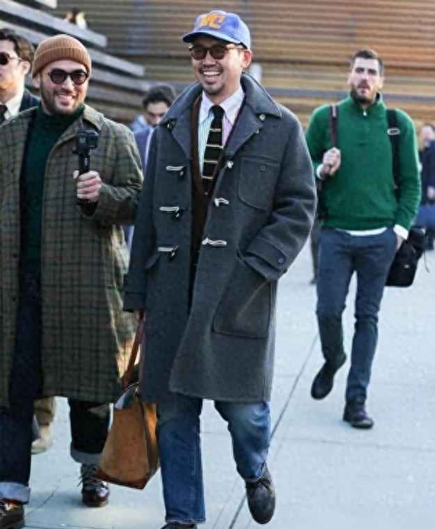 他以前怕冷,羽绒服穿得像个球,现在衬衫加马甲,外面套件呢子大衣,风度和温暖都兼顾了。