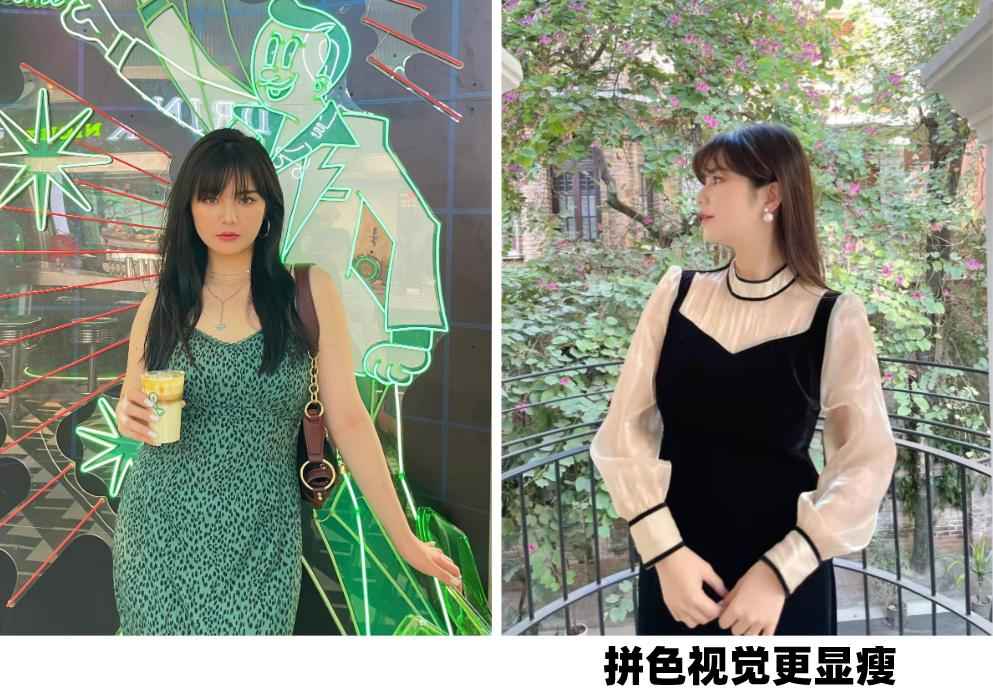 姐妹们,这招一般人我可不告诉。微胖女孩一定要多试试拼色衣服,色块分割真的超显瘦。