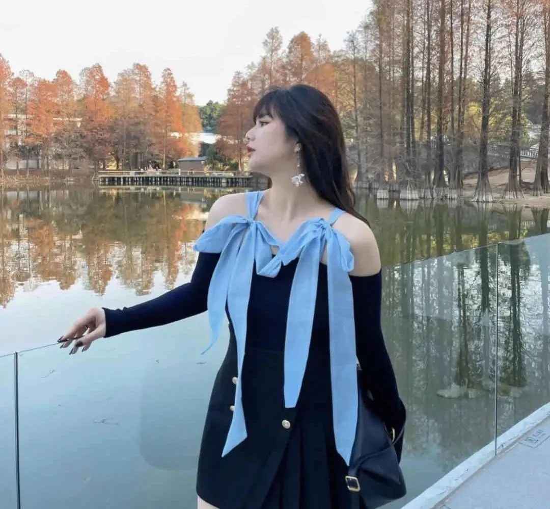 还有这种带长飘带的上衣也很绝,飘带和衣服主色对比鲜明,穿上身立马显瘦。