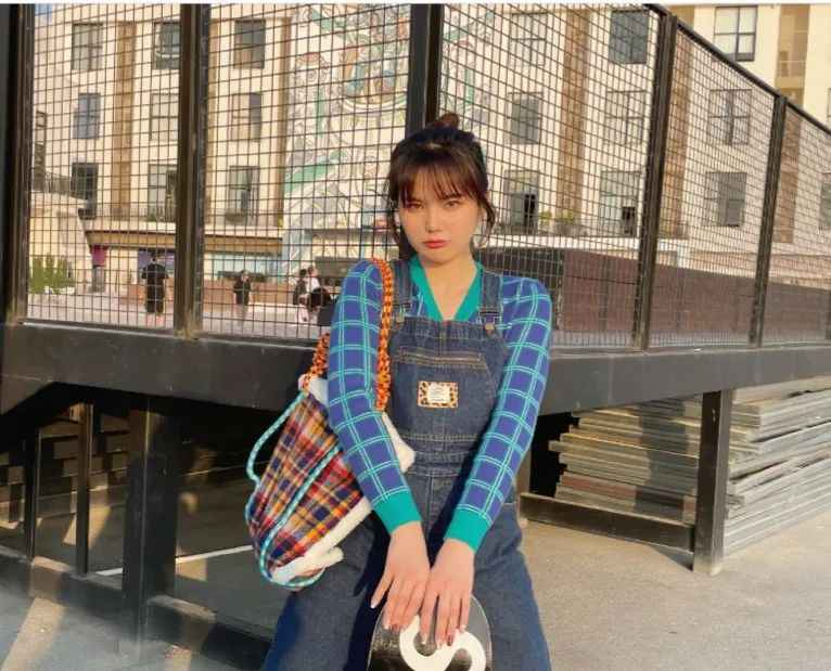 加上背带裤就能给上半身增加色块和轮廓感,遮肉又减龄,局促感全无。