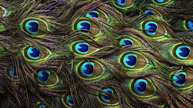 但这里头有个天大的误会!你以为你看到的那些闪瞎眼的蓝啊、绿啊、紫啊,是颜料染出来的么?那可大错特错了。孔雀羽毛的颜色,是个标准的“骗局”,科学上叫结构色。说人话就是,它的羽毛微观上长着像栅栏一样精密排列的 keratin(就跟你指甲盖一样的材质)晶体层。光线照上去,不是被色素吸收再反射,而是发生了光的干涉、衍射和散射。这就好比下雨天后路边油膜呈现的彩虹色,或者光盘背面的彩光,颜色会随着你看的角度变化而变化。所以你稍微动一动,孔雀羽毛的颜色就从蓝变绿,从绿变紫,流光溢彩,这才是它惊艳的秘密所在!这也是回答“孔雀什么颜色”时最核心的知识点——它的颜色是“物理魔法”变出来的光学戏法,不是固定的色素。