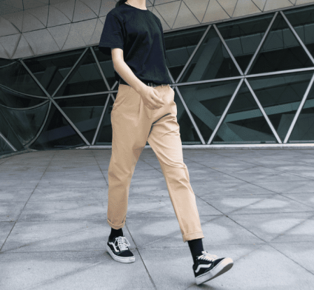 网友小美问: 卡其色上衣配黑色紧身裤会不会太普通?