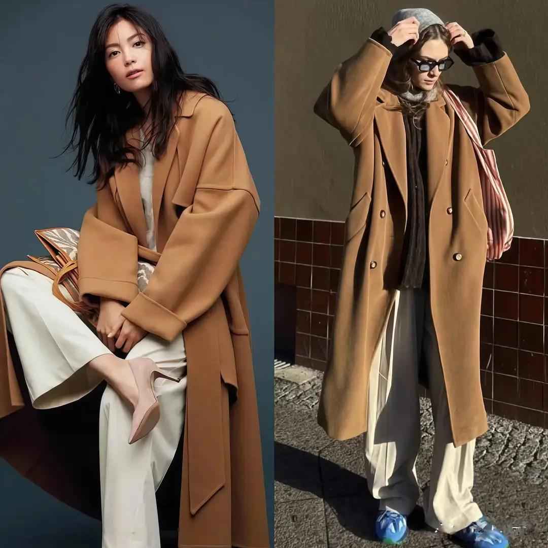 当然,你也可以试试驼色大衣内搭卫衣,配灰色或白色休闲阔腿裤,日常出门这么穿,舒服又好看。