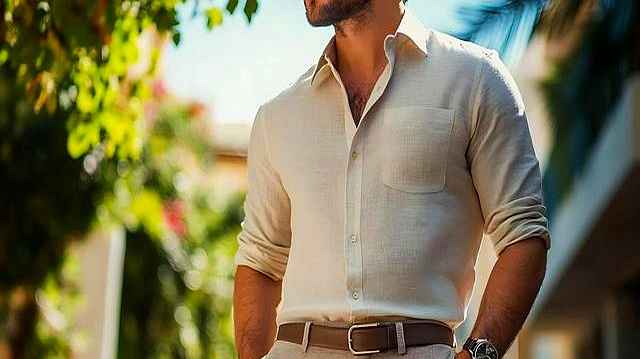 短袖衬衫或 Polo 衫都不错,关键选合身剪裁,突出肩线,保持清爽又得体。