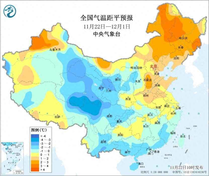 先是从11月22日到25日,一股比较强的冷空气会从西边往东扫过来,长江以北地区降温6℃到8℃,有些地方能降10℃到12℃,还伴着4到6级北风,阵风可能达到7到8级。南方地区也会降温4℃到6℃。