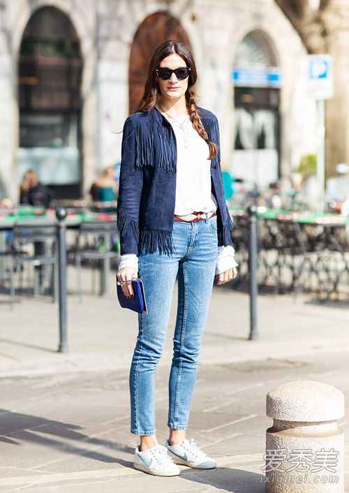最后说说经久不衰的紧身牛仔裤。它完美勾勒腿型,是展现身材曲线的利器。它的搭配核心是“上紧下紧”,所以鞋子要承担起整体风格的导向。