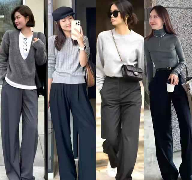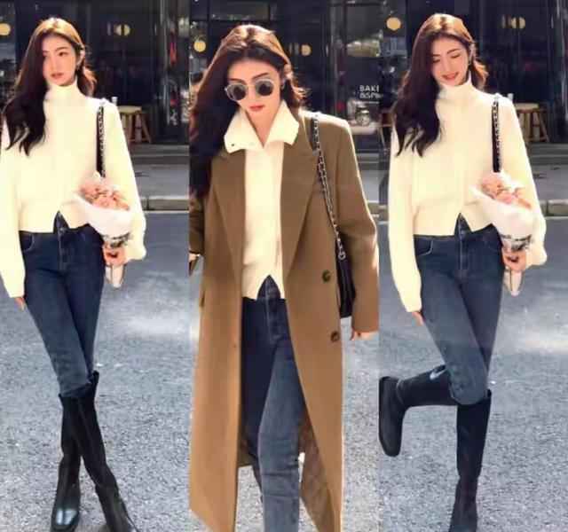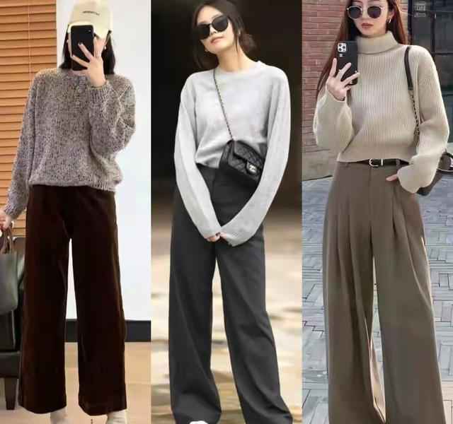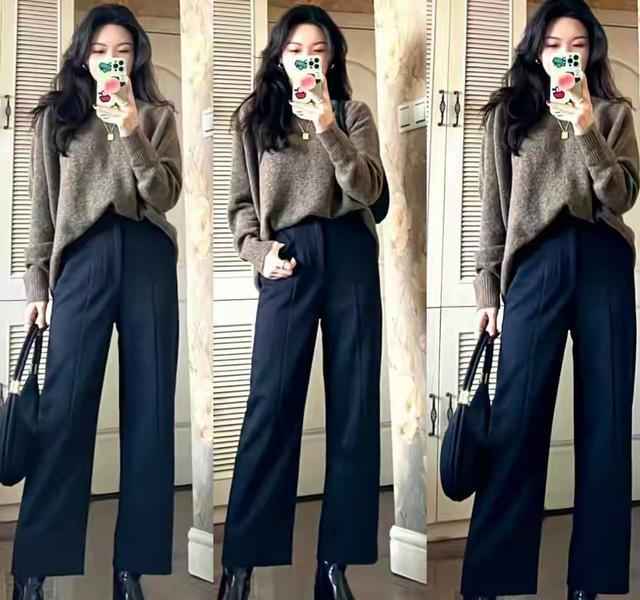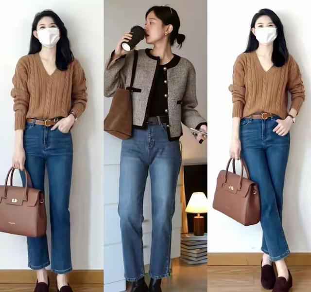 回归基础穿搭,“十式法则”依然好用:毛衣配阔腿牛仔裤,经典不过时。