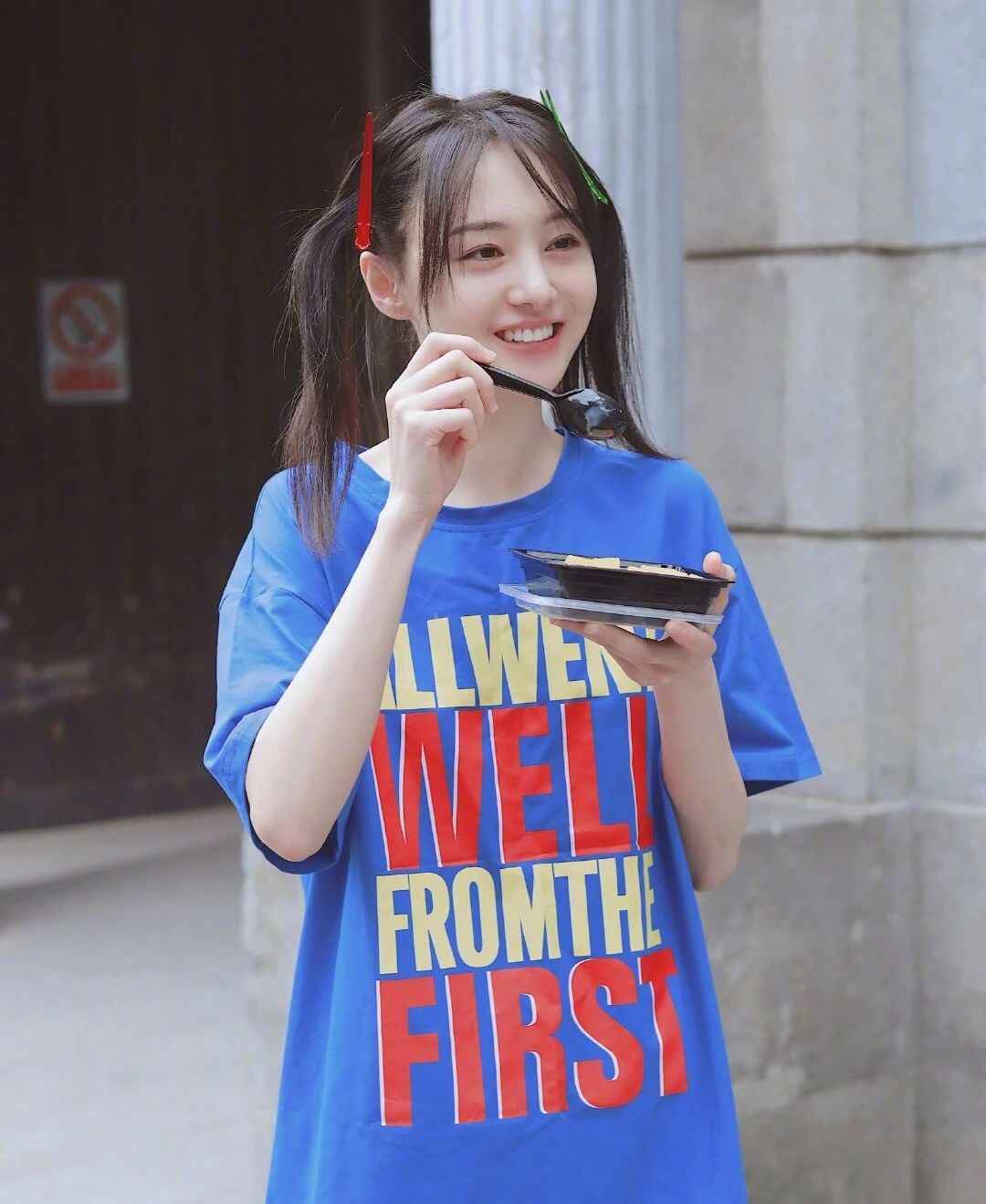 徐梦洁的细辫双马尾可爱到爆!蓬松头发配上额前碎发超显脸小,笑起来眼睛弯弯的,简直像颗甜甜的草莓!