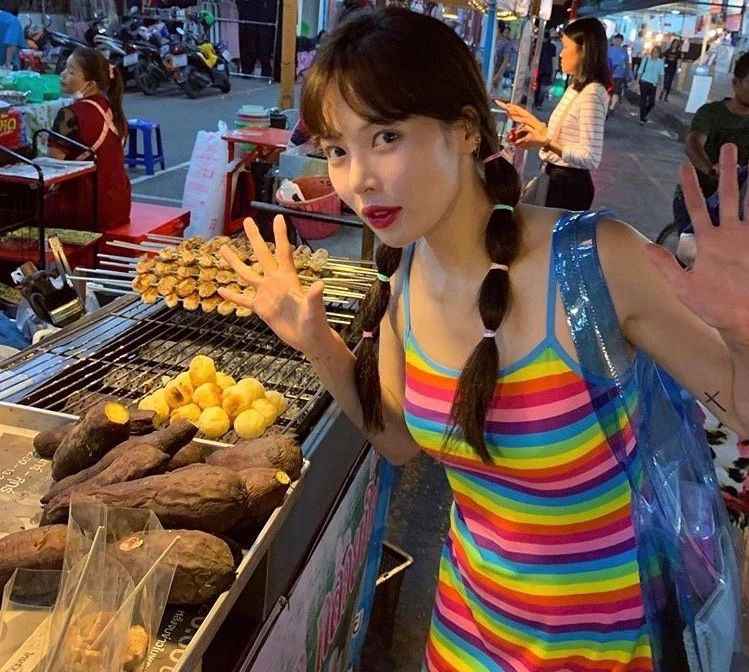 舞台上霸气十足的泫雅,私底下扎双马尾秒变邻家妹,用彩色皮筋分段绑,扯出蓬松感,又特别又显小,活力满满!