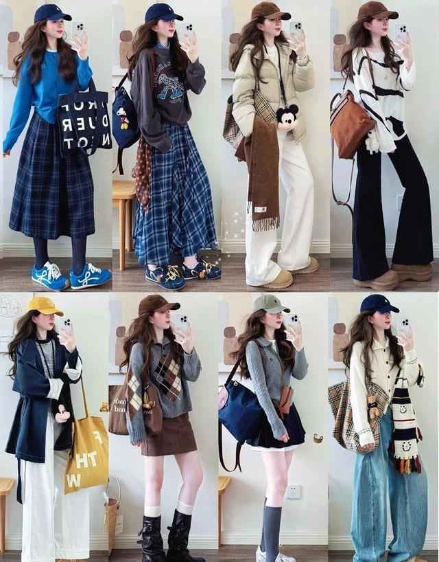 整套穿搭逻辑简单到懒人也能学会:先选一件宽松卫衣或毛衣,盖住臀部最保险;下面穿阔腿牛仔裤或百褶裙,把秋裤藏好;外套随便披件风衣或羽绒服,长度超过卫衣五厘米,风一吹,衣摆飘动,人就更显瘦。重点在配饰:彩色袜子露一截,棒球帽压住一半刘海,背包带上挂个亚克力樱桃,远远看去,就像把糖纸穿在身上,谁还注意你昨晚熬夜了。