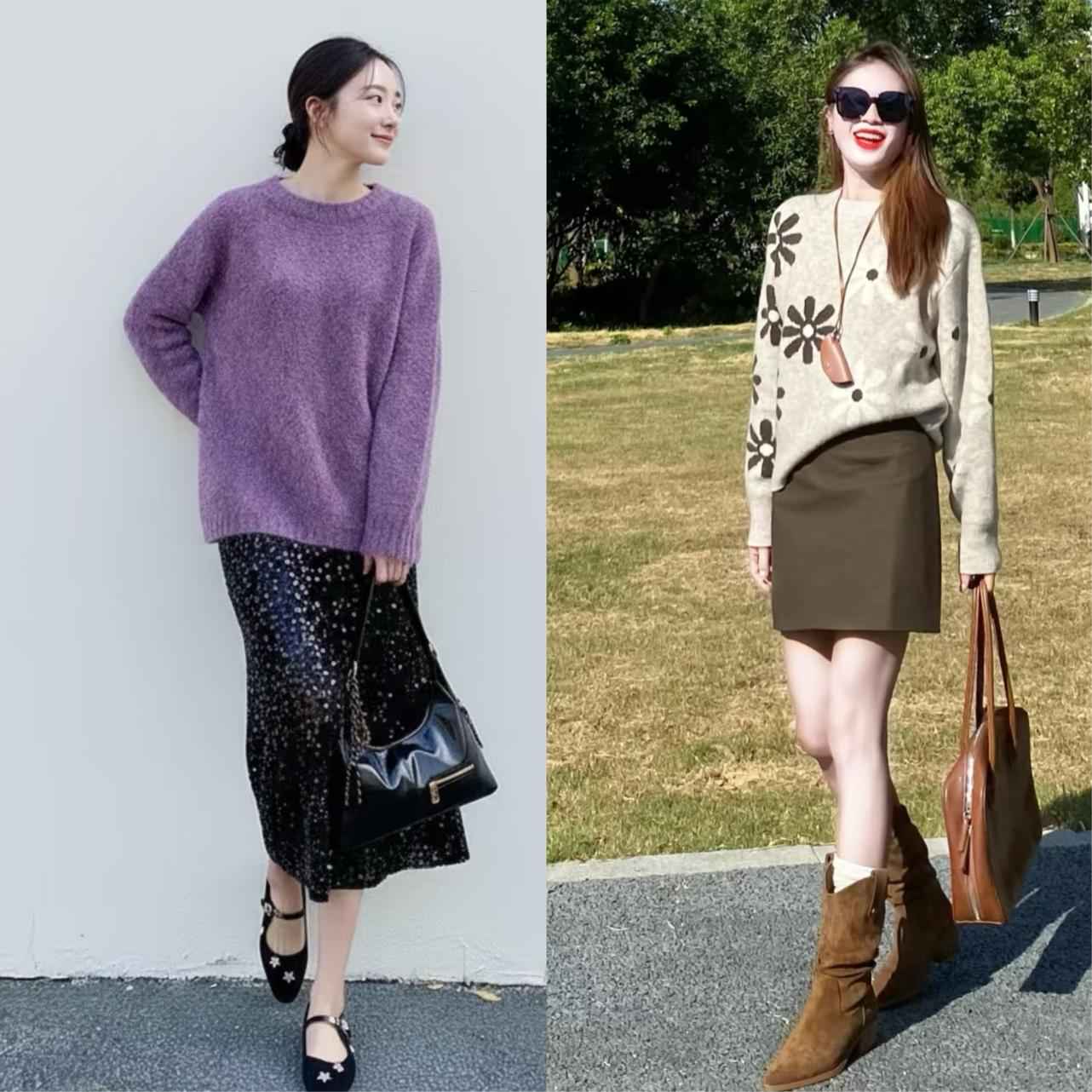 天冷才注意:今年爆火“毛衣+半身裙”,矮个妹子穿出温柔气质
