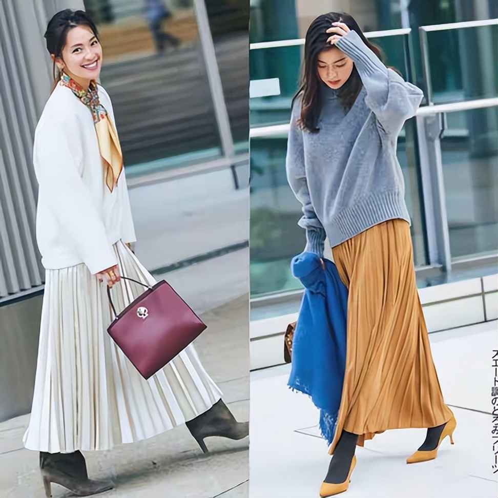 百褶裙的灵动和毛衣的柔软简直是秋天最佳搭档。褶皱设计随风摆动,自带高级和飘逸感,特别适合年轻女孩。
