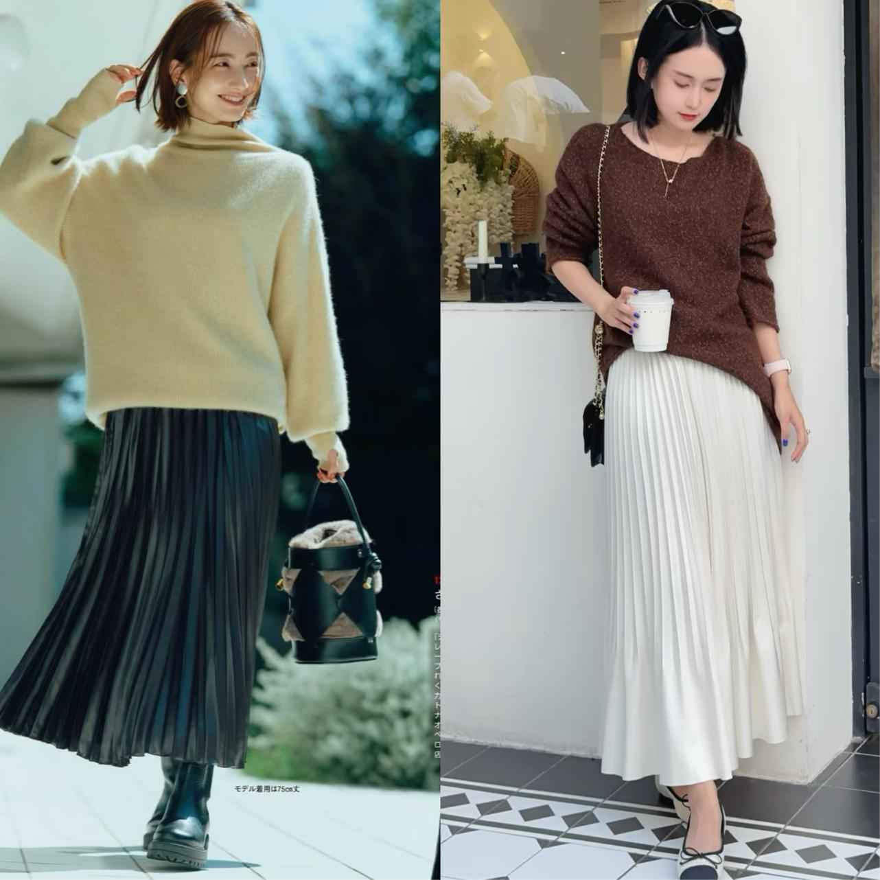 想穿出与众不同,别总是同色系搭配,可以用深浅对比增加层次。比如深色毛衣配浅色百褶裙,或者浅色毛衣配深色百褶裙,都能让穿搭更丰富,时髦度飙升!