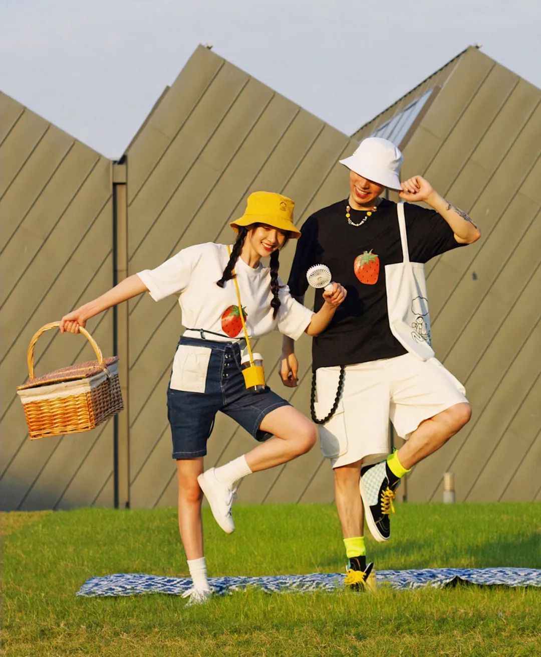 夏天来了,青春活力的穿搭特别受欢迎,因为它看起来清爽又日常,不挑人,超级适合情侣出门。减龄卡通印花T恤是打造少年感的第一步,女生可以选短款突出腰线,男生用衬衫搭配,简洁又有层次。