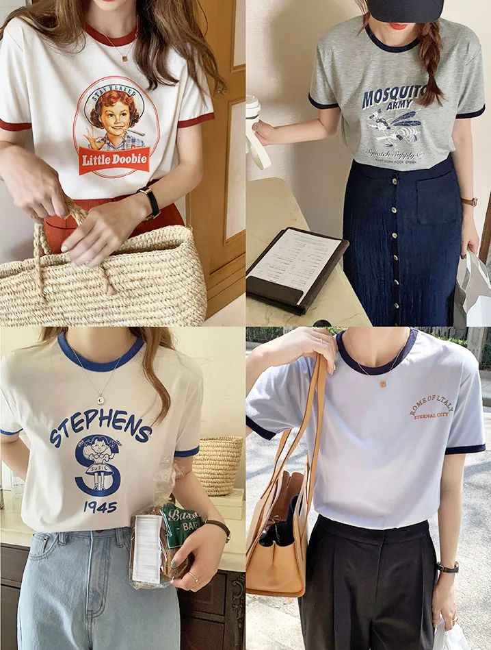 闺蜜装的高级玩法是各有特色,T恤是打造和谐又个性的一把好手。比如这款有不同颜色和图案,每种都有夏日风情,撞色设计带点韩系清新感,配短裤、长裤或裙子都行。