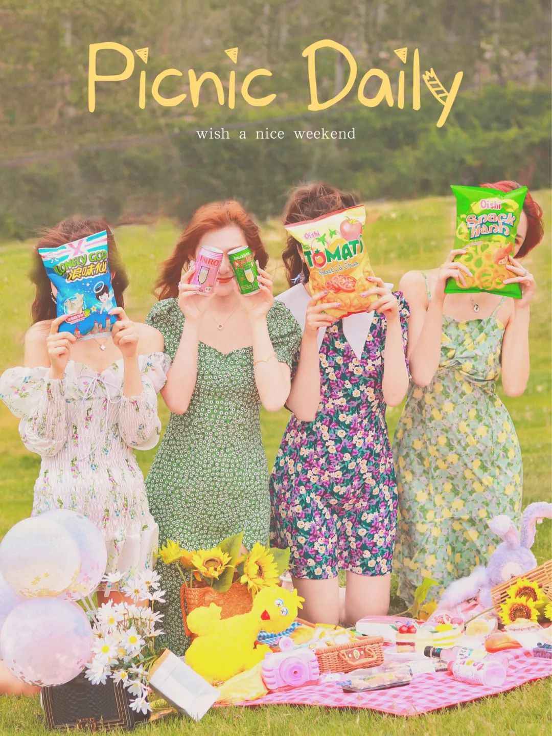 周末朋友圈总被ins风野餐照刷屏,想照片吸睛,穿搭得亮眼!建议选亮色衣服或带草坪花卉元素,比如碎花、格纹,和环境更搭,照片发出去肯定点赞多多!