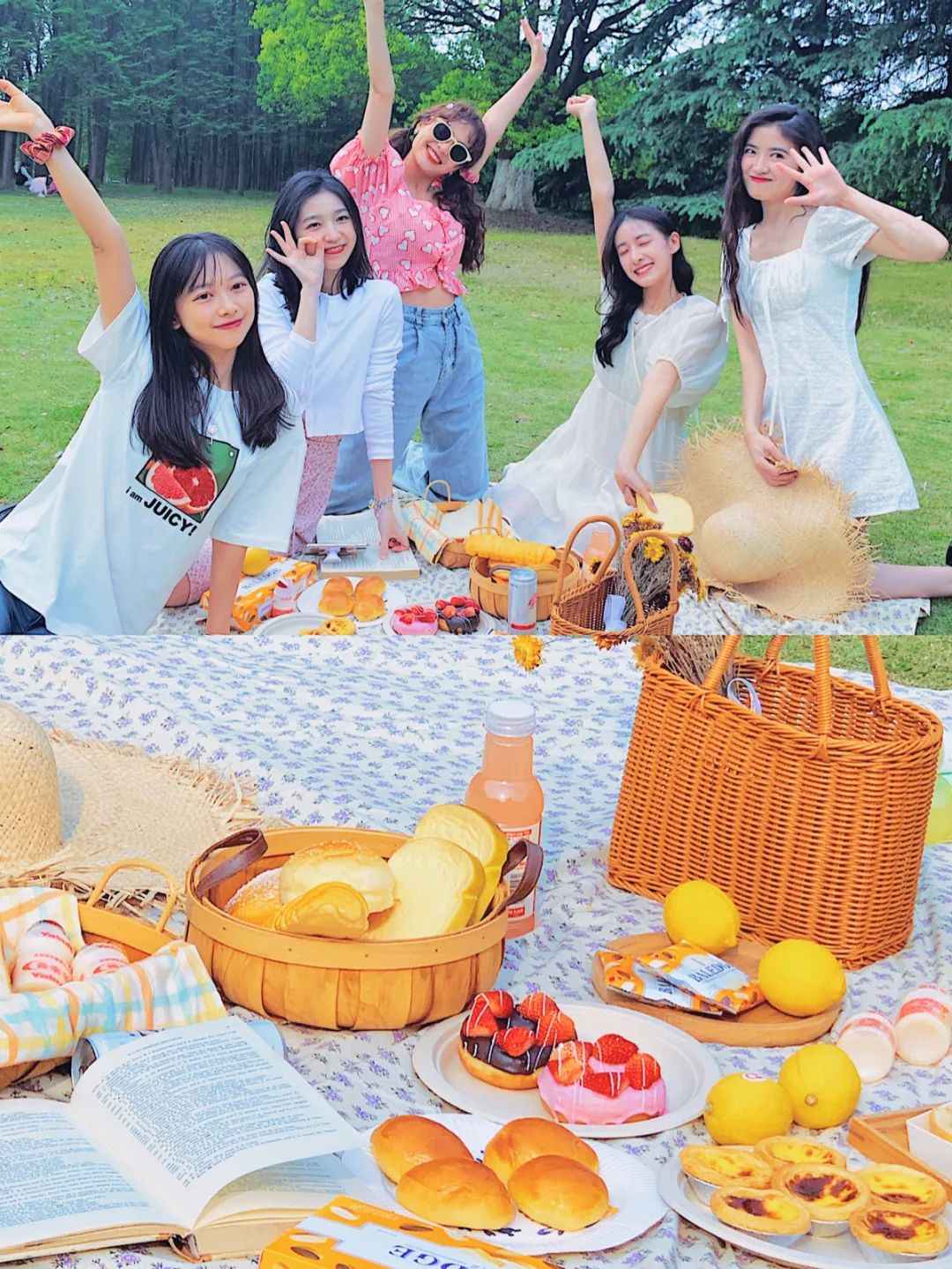 和闺蜜野餐,大家颜值相当的话,靠穿搭取胜。记住,亮色上衣是制胜法宝!