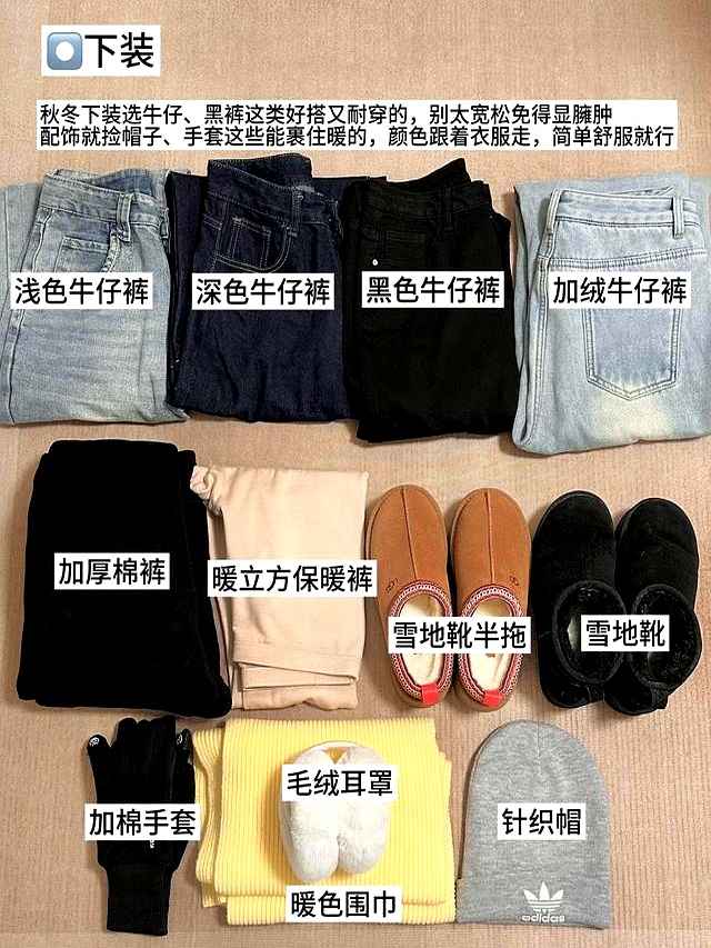 加绒牛仔裤是最实用的单品之一,尤其是含棉量超过95%的款式,保暖效果特别好。