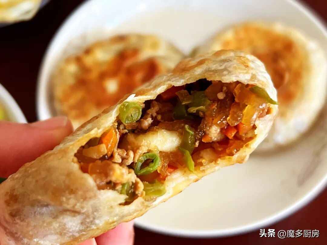 猪肉豆角粉条馅饼,我提前做好了一些生胚冻在冰箱里,早上拿出来不用解冻,直接放平底锅或电饼铛刷点油煎熟就行,既省时又吃得舒坦。