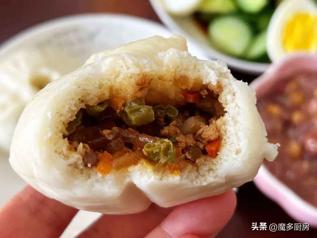 包子馅随便搭,荤素都行,按季节蔬菜做更好,营养健康又干净。我这个是猪肉、粉条、豆角、胡萝卜馅,咸香松软,孩子爱吃。
