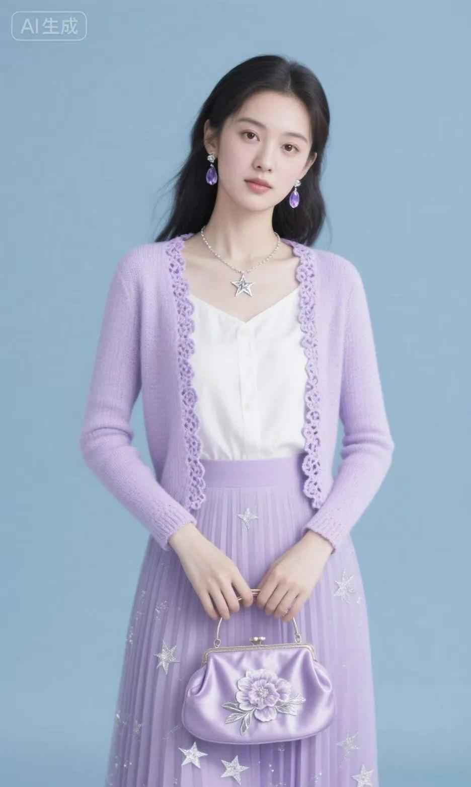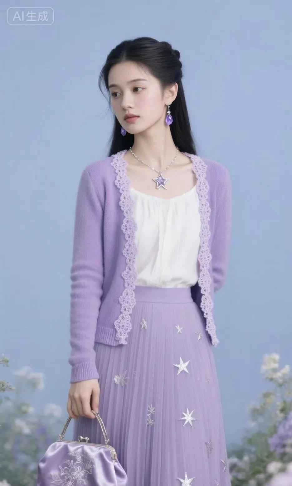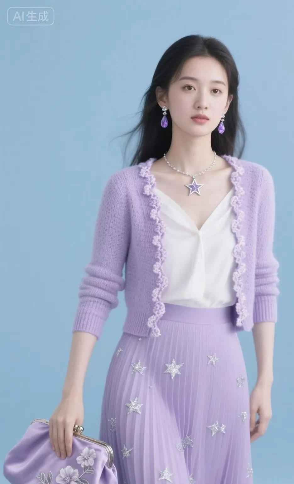 紫色可以通过卫衣或碎花单品展现少女感,比如淡紫色卫衣搭配牛仔裤,或者紫色碎花裙配浅色上衣。局部使用紫色作为点缀,也能提升整体时尚度。